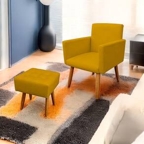 Poltrona Decorativa Nina com Puff New para Sala e Quarto Suede Amarelo- Jylcrom