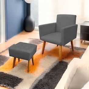 Poltrona Decorativa Nina com Puff New para Sala e Quarto Suede Cinza - Jylcrom