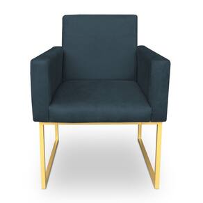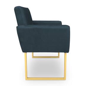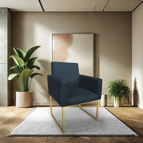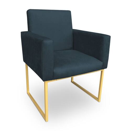 Poltrona Decorativa Nina Suede Azul Marinho Base Metálica Industrial Dourado - Pallazio