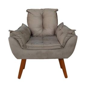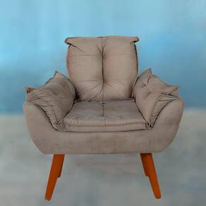 Poltrona Decorativa Opalla Suede Capuccino + Puff Pés Palito