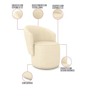 A Poltrona Malu é uma peça que combina segurança, conforto e durabilidade. Ela tem um design orgânico que remete às formas encontradas na natureza oferecendo uma sensação de calma e equilíbrio criando um espaço acolhedor e relaxante. Além da sua simetria artística e curvas suaves, ela contém um revestimento em Linho que harmoniza com qualquer ambiente. Pode ser utilizada em sala de estar, recepções, escritórios, lojas, espaços comerciais, ou qualquer outro espaço que você queira decorar com estilo e bom gosto. Ela tem uma estrutura em madeira de reflorestamento eucalipto, que garante a resistência e a sustentabilidade do produto. Ela suporta até 120 kg de peso, podendo ser utilizada por pessoas de diferentes biotipos. Ela tem um acabamento reforçado e espuma de qualidade D23, que oferece maciez e aconchego. Ela contém encosto arredondados e um assento cilíndrico resultando em um acabamento impecável conferindo muito mais valor e elegância ao produto. As sapatas plásticas (fixa) são pequenas proteções colocadas na base dos pés para evitar que eles risquem ou danifiquem o chão. A Poltrona Malu é um móvel de alta qualidade, que exala sofisticação e conforto. Ela é fácil de transportar, pois tem um peso leve e um tamanho compacto. Ela vai trazer charme, conforto incomparável e durabilidade para o seu ambiente. Corra e garanta sua Poltrona agora mesmo!