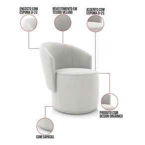 A Poltrona Malu é uma peça que combina segurança, conforto e durabilidade. Ela tem um design orgânico que remete às formas encontradas na natureza oferecendo uma sensação de calma e equilíbrio criando um espaço acolhedor e relaxante. Além da sua simetria artística e curvas suaves, ela contém um revestimento em Veludo que harmoniza com qualquer ambiente. Pode ser utilizada em sala de estar, recepções, escritórios, lojas, espaços comerciais, ou qualquer outro espaço que você queira decorar com estilo e bom gosto. Ela tem uma estrutura em madeira de reflorestamento eucalipto, que garante a resistência e a sustentabilidade do produto. Ela suporta até 120 kg de peso, podendo ser utilizada por pessoas de diferentes biotipos. Ela tem um acabamento reforçado e espuma de qualidade D23, que oferece maciez e aconchego. Ela contém encosto arredondados e um assento cilíndrico resultando em um acabamento impecável conferindo muito mais valor e elegância ao produto. As sapatas plásticas (fixa) são pequenas proteções colocadas na base dos pés para evitar que eles risquem ou danifiquem o chão. A Poltrona Malu é um móvel de alta qualidade, que exala sofisticação e conforto. Ela é fácil de transportar, pois tem um peso leve e um tamanho compacto. Ela vai trazer charme, conforto incomparável e durabilidade para o seu ambiente. Corra e garanta sua Poltrona agora mesmo!