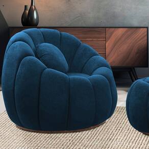 Poltrona Decorativa Orgânica Giratória Cloud Bouclê E03 - D`Rossi - Azul Marinho