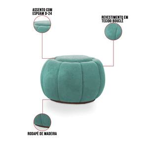 A Poltrona Giratória com Puff Cloud é um kit que combina formas artísticas, conforto e durabilidade. Ele tem um design orgânico que remete às formas encontradas na natureza como as nuvens criando um espaço acolhedor e relaxante. Além da sua simetria e curvas suaves, a poltrona contém uma Base Giratória e o puff possui sapatas plásticas(Fixa), ambos com revestimento em tecido Bouclê Azul Turquesa que cria uma conexão entre a peça e o ambiente. Pode ser utilizado em sala de estar, recepções, escritórios, lojas e espaços comerciais, ou qualquer outro espaço que você queira decorar com estilo e bom gosto. Ele tem uma estrutura em madeira de reflorestamento eucalipto, que garante a resistência e a sustentabilidade do produto. Ele suporta até 120 kg de peso, podendo ser utilizada por pessoas de diferentes biotipos. Inclui almofada solta com enchimento de fibra siliconada, oferecendo versatilidade para diferentes usos e necessidades. Ele tem um acabamento reforçado e espuma de qualidade D24, que oferece maciez e aconchego. Ele apresenta detalhes de costura refinados em formato arredondado resultando em um acabamento impecável conferindo muito mais valor e elegância ao produto. Ele é fácil de transportar, pois tem um peso leve e um tamanho compacto. A Poltrona Giratória com Puff Cloud é um conjunto que vai fazer a diferença na sua decoração e no seu bem-estar. Garanta já a sua!