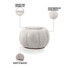 A Poltrona Giratória com Puff Cloud é um kit que combina formas artísticas, conforto e durabilidade. Ele tem um design orgânico que remete às formas encontradas na natureza como as nuvens criando um espaço acolhedor e relaxante. Além da sua simetria e curvas suaves, a poltrona contém uma Base Giratória e o puff possui sapatas plásticas(Fixa), ambos com revestimento em tecido Bouclê Cinza Claro que cria uma conexão entre a peça e o ambiente. Pode ser utilizado em sala de estar, recepções, escritórios, lojas e espaços comerciais, ou qualquer outro espaço que você queira decorar com estilo e bom gosto. Ele tem uma estrutura em madeira de reflorestamento eucalipto, que garante a resistência e a sustentabilidade do produto. Ele suporta até 120 kg de peso, podendo ser utilizada por pessoas de diferentes biotipos. Inclui almofada solta com enchimento de fibra siliconada, oferecendo versatilidade para diferentes usos e necessidades. Ele tem um acabamento reforçado e espuma de qualidade D24, que oferece maciez e aconchego. Ele apresenta detalhes de costura refinados em formato arredondado resultando em um acabamento impecável conferindo muito mais valor e elegância ao produto. Ele é fácil de transportar, pois tem um peso leve e um tamanho compacto. A Poltrona Giratória com Puff Cloud é um conjunto que vai fazer a diferença na sua decoração e no seu bem-estar. Garanta já a sua!