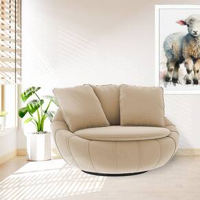 Poltrona Decorativa Orgânica Giratória Glória Veludo Bege - Loja Sheep