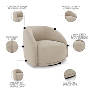 Bem-estar e elegância descrevem bem a Poltrona Decorativa Orgânica Giratória Lya M22 Suede Bege, da Mpozenato, o que a torna ideal para compor a decoração de diversos ambientes, desde a sala de estar, living, quarto, escritório e por aí vai.