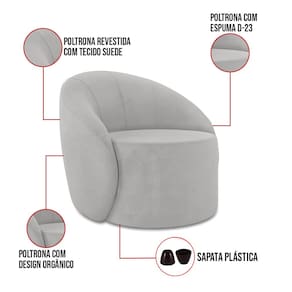 A Poltrona Lua é uma peça que combina segurança, conforto e durabilidade. Ela tem um design orgânico que remete às formas encontradas na natureza como ondas, folhas ou conchas que além de se moldar ao corpo humano, evoca uma sensação de calma e equilíbrio criando um espaço acolhedor e relaxante. Além da sua simetria artística e curvas suaves, ela contém um revestimento em tecido Suede Cinza, que cria uma conexão entre a peça e o ambiente. Ela é ideal para quem busca móveis que não só sejam bonitos, mas que também proporcionem conforto e bem-estar. Pode ser utilizada em sala de estar, recepções, escritórios, lojas e espaços comerciais, ou qualquer outro espaço que você queira decorar com estilo e bom gosto. Ela tem uma estrutura em madeira de reflorestamento eucalipto, que garante a resistência e a sustentabilidade do produto. Ela suporta até 120 kg de peso, podendo ser utilizada por pessoas de diferentes biotipos. Ela tem um acabamento reforçado e espuma de qualidade D23, que oferece maciez e aconchego. Ela contém detalhes de costura no encosto e um assento cilíndrico arredondado resultando em um acabamento impecável conferindo muito mais valor e elegância ao produto, oferecendo maior liberdade de movimento ao cliente. As sapatas plásticas são pequenas proteções colocadas na base dos pés do sofá para evitar que eles risquem ou danifiquem o chão. A Poltrona Lua é um móvel de alta qualidade, que exala sofisticação e conforto. Ela é fácil de transportar, pois tem um peso leve e um tamanho compacto. Ela vai trazer charme, Conforto incomparável e durabilidade para o seu ambiente. Corra e garanta seu kit 2 Poltronas agora mesmo!