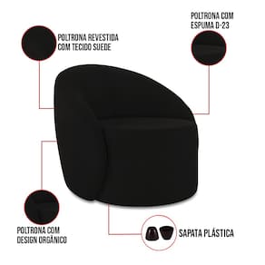Poltrona Decorativa Orgânica Kit 2 Lua Suede D03 - D`Rossi - Preto
