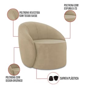 A Poltrona Lua é uma peça que combina segurança, conforto e durabilidade. Ela tem um design orgânico que remete às formas encontradas na natureza como ondas, folhas ou conchas que além de se moldar ao corpo humano, evoca uma sensação de calma e equilíbrio criando um espaço acolhedor e relaxante. Além da sua simetria artística e curvas suaves, ela contém um revestimento em tecido Suede Marrom Rato, que cria uma conexão entre a peça e o ambiente. Ela é ideal para quem busca móveis que não só sejam bonitos, mas que também proporcionem conforto e bem-estar. Pode ser utilizada em sala de estar, recepções, escritórios, lojas e espaços comerciais, ou qualquer outro espaço que você queira decorar com estilo e bom gosto. Ela tem uma estrutura em madeira de reflorestamento eucalipto, que garante a resistência e a sustentabilidade do produto. Ela suporta até 120 kg de peso, podendo ser utilizada por pessoas de diferentes biotipos. Ela tem um acabamento reforçado e espuma de qualidade D23, que oferece maciez e aconchego. Ela contém detalhes de costura no encosto e um assento cilíndrico arredondado resultando em um acabamento impecável conferindo muito mais valor e elegância ao produto, oferecendo maior liberdade de movimento ao cliente. As sapatas plásticas são pequenas proteções colocadas na base dos pés do sofá para evitar que eles risquem ou danifiquem o chão. A Poltrona Lua é um móvel de alta qualidade, que exala sofisticação e conforto. Ela é fácil de transportar, pois tem um peso leve e um tamanho compacto. Ela vai trazer charme, Conforto incomparável e durabilidade para o seu ambiente. Corra e garanta a sua agora mesmo!