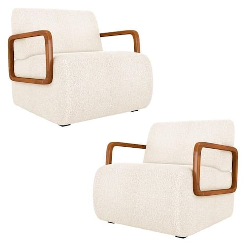 Deixe-se envolver pelo conforto e estilo da Poltrona Decorativa Orgânica para Sala Kit 2 Belarus K04 Bouclê Bege, da Mpozenato.