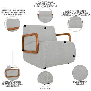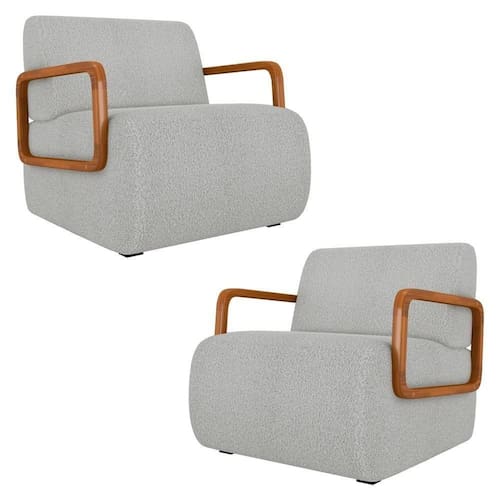 Deixe-se envolver pelo conforto e estilo da Poltrona Decorativa Orgânica para Sala Kit 2 Belarus Z08 Boucle Cinza Claro, da Mpozenato.