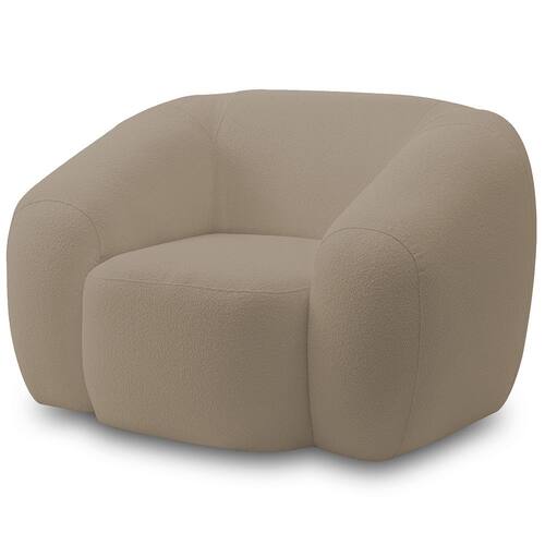 Características: Estrutura em madeira de lei (eucalipto), tratada e aparelhada com reforços de cantoneiras e chapas em OSB. Revestimento em tecido Bouclê de alta qualidade na cor Bege Assento fixo com espuma D-23 e D-18 soft, molas espirais e percintas elásticas de alta resistência. Encosto fixo com espuma D-18 soft, mola zig zag e percintas elásticas. Braços com espuma D-18 soft. Pés de madeira torneado. Design orgânico para uso em diversos ambientes. Peso suportado: Até 120 kg por assento.