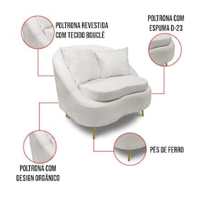 A Poltrona Zaya é uma peça que combina segurança, conforto e durabilidade. Ela tem um design orgânico que remete às formas encontradas na natureza como ondas, folhas ou conchas que além de se moldar ao corpo humano, evoca uma sensação de calma e equilíbrio criando um espaço acolhedor e relaxante. Além da sua simetria artística e curvas suaves, ela contém os Pés de Ferro Dourado e um revestimento em tecido Bouclê Off White, que cria uma conexão entre a peça e o ambiente. Ela é ideal para quem busca móveis que não só sejam bonitos, mas que também proporcionem conforto e bem-estar. Pode ser utilizada em sala de estar, salas de espera, recepções, bibliotecas, salas de leitura, espaços externos cobertos, espaços de design e galerias, escritórios, lojas e espaços comerciais, ou qualquer outro espaço que você queira decorar com estilo e bom gosto. Ela tem uma estrutura em madeira de reflorestamento eucalipto, que garante a resistência e a sustentabilidade do produto. Ela suporta até 120 kg de peso, podendo ser utilizada por pessoas de diferentes biotipos. Ela tem um acabamento reforçado e espuma de qualidade D23, que oferece maciez e aconchego. O encosto conta com duas almofadas soltas, macias e generosas, permitindo que se ajustem ao corpo do usuário para oferecer um suporte personalizado. O assento também conta com uma almofada solta, oferecendo flexibilidade e facilidade de ajuste, além de garantir um toque macio e confortável. A Poltrona Zaya é um móvel de alta qualidade, que exala sofisticação e conforto. Ela é fácil de transportar, pois tem um peso leve e um tamanho compacto. A Poltrona Zaya é um produto que vai fazer a diferença na sua decoração e no seu bem-estar. Ela vai trazer charme, conforto incomparável e durabilidade para o seu ambiente. Aproveite essa oferta e leve para casa uma poltrona de qualidade por um preço incrível. Essa é a sua chance de ter uma poltrona deslumbrante por um preço imperdível. Corra e garanta seu Kit 2 Poltronas antes que acabe o estoque!