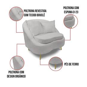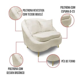 A Poltrona Zaya é uma peça que combina segurança, conforto e durabilidade. Ela tem um design orgânico que remete às formas encontradas na natureza como ondas, folhas ou conchas que além de se moldar ao corpo humano, evoca uma sensação de calma e equilíbrio criando um espaço acolhedor e relaxante. Além da sua simetria artística e curvas suaves, ela contém os Pés de Ferro Dourado e um revestimento em tecido Bouclê, que cria uma conexão entre a peça e o ambiente. Ela é ideal para quem busca móveis que não só sejam bonitos, mas que também proporcionem conforto e bem-estar. Pode ser utilizada em sala de estar, salas de espera, recepções, bibliotecas, salas de leitura, espaços externos cobertos, espaços de design e galerias, escritórios, lojas e espaços comerciais, ou qualquer outro espaço que você queira decorar com estilo e bom gosto. Ela tem uma estrutura em madeira de reflorestamento eucalipto, que garante a resistência e a sustentabilidade do produto. Ela suporta até 120 kg de peso, podendo ser utilizada por pessoas de diferentes biotipos. Ela tem um acabamento reforçado e espuma de qualidade D23, que oferece maciez e aconchego. O encosto conta com duas almofadas soltas, macias e generosas, permitindo que se ajustem ao corpo do usuário para oferecer um suporte personalizado. O assento também conta com uma almofada solta, oferecendo ibilidade e facilidade de ajuste, além de garantir um toque macio e confortável. A Poltrona Zaya é um móvel de alta qualidade, que exala sofisticação e conforto. Ela é fácil de transportar, pois tem um peso leve e um tamanho compacto. A Poltrona Zaya é um produto que vai fazer a diferença na sua decoração e no seu bem-estar. Ela vai trazer charme, conforto incomparável e durabilidade para o seu ambiente. Aproveite essa oferta e leve para casa uma poltrona de qualidade por um preço incrível. Essa é a sua chance de ter uma poltrona deslumbrante por um preço imperdível. Corra e garanta a sua antes que acabe o estoque!