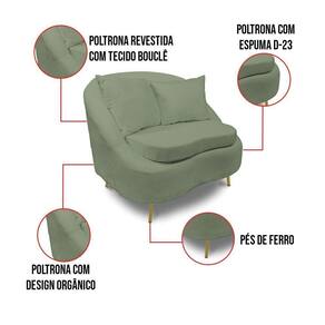 A Poltrona Zaya é uma peça que combina segurança, conforto e durabilidade. Ela tem um design orgânico que remete às formas encontradas na natureza como ondas, folhas ou conchas que além de se moldar ao corpo humano, evoca uma sensação de calma e equilíbrio criando um espaço acolhedor e relaxante. Além da sua simetria artística e curvas suaves, ela contém os Pés de Ferro Dourado e um revestimento em tecido Bouclê, que cria uma conexão entre a peça e o ambiente. Ela é ideal para quem busca móveis que não só sejam bonitos, mas que também proporcionem conforto e bem-estar. Pode ser utilizada em sala de estar, salas de espera, recepções, bibliotecas, salas de leitura, espaços externos cobertos, espaços de design e galerias, escritórios, lojas e espaços comerciais, ou qualquer outro espaço que você queira decorar com estilo e bom gosto. Ela tem uma estrutura em madeira de reflorestamento eucalipto, que garante a resistência e a sustentabilidade do produto. Ela suporta até 120 kg de peso, podendo ser utilizada por pessoas de diferentes biotipos. Ela tem um acabamento reforçado e espuma de qualidade D23, que oferece maciez e aconchego. O encosto conta com duas almofadas soltas, macias e generosas, permitindo que se ajustem ao corpo do usuário para oferecer um suporte personalizado. O assento também conta com uma almofada solta, oferecendo ibilidade e facilidade de ajuste, além de garantir um toque macio e confortável. A Poltrona Zaya é um móvel de alta qualidade, que exala sofisticação e conforto. Ela é fácil de transportar, pois tem um peso leve e um tamanho compacto. A Poltrona Zaya é um produto que vai fazer a diferença na sua decoração e no seu bem-estar. Ela vai trazer charme, conforto incomparável e durabilidade para o seu ambiente. Aproveite essa oferta e leve para casa uma poltrona de qualidade por um preço incrível. Essa é a sua chance de ter uma poltrona deslumbrante por um preço imperdível. Corra e garanta a sua antes que acabe o estoque!