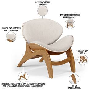 Em um ambiente iluminado por suaves raios de sol, a Poltrona Kadosh, da Lyam Decor, se destaca como uma obra de arte contemporânea. Seus contornos curvos, delicadamente esculpidos, convidam ao aconchego, como se a própria peça estivesse sussurrando promessas de conforto e tranquilidade. A estrutura de madeira laminada de Taeda garante estabilidade e resistência, ao passo que harmoniza com a suavidade e maciez do estofamento de alta densidade, que parece abraçar quem se acomoda, moldando-se ao corpo com uma leveza surpreendente.