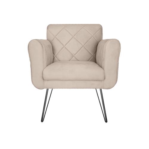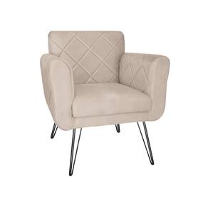 Poltrona Decorativa Para Recepção Com Pés de Ferro Isabella Corano Bege - LM DECOR