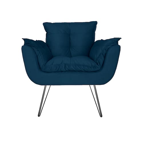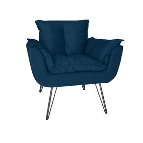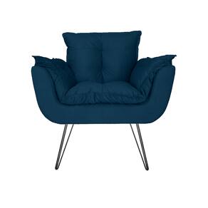 Poltrona Decorativa Para Recepção Com Pés de Ferro Opala Suede Azul Marinho - LM DECOR