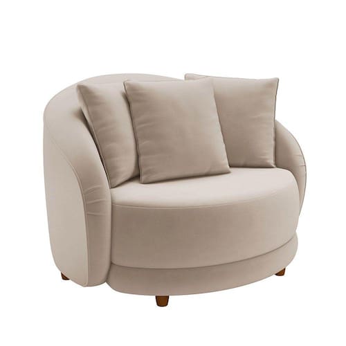 O design redondo com almofadas soltas faz com que essa poltrona moderna complemente a decoração da sua sala de estar, além de oferecer o máximo de aconchego, dando a sensação de estar sendo abraçado por ela. E tudo isso, graças à estrutura robusta com madeira maciça imunizada contra mofo, cupim e micro-organismo. Já a maciez do estofado fica por conta das espumas de alta densidade, reforçadas com cintas elásticas de alta resistência. Para completar, o pé de madeira evita o contato direto no chão e, ainda, dá aquele toque de charme.
