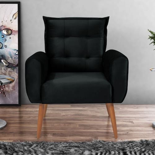 ESTADO DE ORIGEM: PR | COMPRIMENTO DO PRODUTO (CM): 75 | PESO MÁXIMO SUPORTADO: 110 | CÔMODO INDICADO: Sala | LARGURA DO PRODUTO (CM): 83 | COM APOIO DE BRAÇOS: Sim | COM RODAS: Não | ALTURA DO PRODUTO COM EMBALAGEM (CM): 80 | LARGURA PRODUTO COM EMBALAGEM (CM): 88 | MATERIAL PARA FILTRO: Veludo | ALTURA DO PRODUTO (CM): 100 | MARCA: CasaH | PRODUTO PRECISA DE MONTAGEM?: Sugerimos a contratação de um montador para a montagem do produto. Não nos responsabilizamos por causadas no ato da montagem. | COM ALTURA AJUSTÁVEL: Não | COM ENCOSTO RECLINÁVEL: Não | QUANTIDADES DE CAIXAS DE EMBALAGEM: 1 | CORES DO PRODUTO (FILTRO DE CORES): Preto | COMPRIMENTO PRODUTO COM EMBALAGEM (CM): 77 | PESO PRODUTO COM EMBALAGEM (KG): 26 | NOME DO PRODUTO NO FORNECEDOR: Poltrona Decorativa | INSTRUÇÕES/CUIDADOS: Limpar com pano macio e seco, não utilizar produtos abrasivos | PESO DO PRODUTO (KG): 25 | MATERIAL PRINCIPAL: Veludo | COR PREDOMINANTE: Preto | DESCRIÇÃO DO TAMANHO: 100x83x75 cm | PRODUTO: Poltrona | É GIRATÓRIA: Não | CONTEÚDO DA EMBALAGEM: 1 Poltrona | TIPO DE CADEIRA: Poltrona