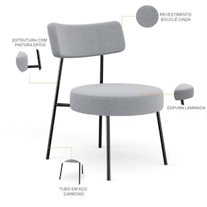 Amplamente moderna, dispondo de muito realce e design singular, a Poltrona Decorativa Para Sala De Estar Base Fixa Londres L02 Bouclê Cinza - Lyam vem com a personalidade e elegância que sua decoração merece! Estruturada em aço carbono, contrasta lindamente com o encosto e assento estofado revestidos em Bouclê, é confeccionada com materiais de excelente qualidade, extremamente resistentes e aconchegantes. Podendo ser disposta em sala de estar, espera e recepção, também em hall de entrada e até mesmo na área gourmet. Adquira já a sua!!