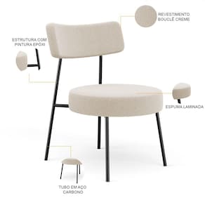 Amplamente moderna, dispondo de muito realce e design singular, a Poltrona Decorativa Para Sala De Estar Base Fixa Londres L02 Bouclê Creme - Lyam vem com a personalidade e elegância que sua decoração merece! Estruturada em aço carbono, contrasta lindamente com o encosto e assento estofado revestidos em Bouclê, é confeccionada com materiais de excelente qualidade, extremamente resistentes e aconchegantes. Podendo ser disposta em sala de estar, espera e recepção, também em hall de entrada e até mesmo na área gourmet. Adquira já a sua!!