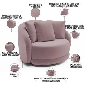 Indicado para uso residencial, sua limpeza deve ser feita com pano umedecido em água limpa, sem esfregar, não utilizar produtos abrasivos, desengordurantes, álcool ou solvente. Nunca sentar nos braços ou encosto do produto.