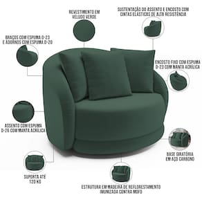 Indicado para uso residencial, sua limpeza deve ser feita com pano umedecido em água limpa, sem esfregar, não utilizar produtos abrasivos, desengordurantes, álcool ou solvente. Nunca sentar nos braços ou encosto do produto.