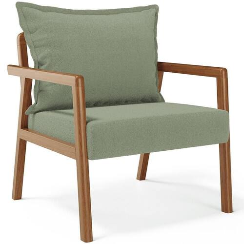 A Poltrona Decorativa Para Sala de Estar e Living Alícia B04 Bouclê Oliva é a peça perfeita para adicionar um toque de estilo moderno a sua sala de estar. Com sua estrutura em madeira maciça envernizada, essa poltrona de madeira traz durabilidade e elegância para o ambiente. O assento estofado e revestido com materiais de qualidade oferece conforto excepcional, permitindo que você relaxe com estilo. Já o design moderno combina perfeitamente com qualquer tipo de decoração, tornando-a uma escolha versátil para qualquer sala de estar, living, recepção, escritório e diversos outros ambientes. A cereja do bolo fica por conta do detalhe da corda trançada no encosto com a almofada sobreposta, um charme à parte.