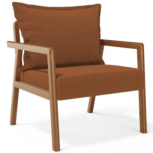 A Poltrona Decorativa Para Sala de Estar e Living Alícia B04 Bouclê Terracota é a peça perfeita para adicionar um toque de estilo moderno a sua sala de estar. Com sua estrutura em madeira maciça envernizada, essa poltrona de madeira traz durabilidade e elegância para o ambiente. O assento estofado e revestido com materiais de qualidade oferece conforto excepcional, permitindo que você relaxe com estilo. Já o design moderno combina perfeitamente com qualquer tipo de decoração, tornando-a uma escolha versátil para qualquer sala de estar, living, recepção, escritório e diversos outros ambientes. A cereja do bolo fica por conta do detalhe da corda trançada no encosto com a almofada sobreposta, um charme à parte.