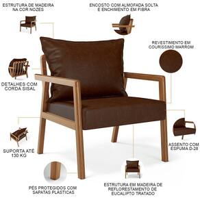 A Poltrona Decorativa Para Sala de Estar e Living Alícia B04 Couríssimo Marrom é a peça perfeita para adicionar um toque de estilo moderno a sua sala de estar. Com sua estrutura em madeira maciça envernizada, essa poltrona de madeira traz durabilidade e elegância para o ambiente. O assento estofado e revestido com materiais de qualidade oferece conforto excepcional, permitindo que você relaxe com estilo. Já o design moderno combina perfeitamente com qualquer tipo de decoração, tornando-a uma escolha versátil para qualquer sala de estar, living, recepção, escritório e diversos outros ambientes. A cereja do bolo fica por conta do detalhe da corda trançada no encosto com a almofada sobreposta, um charme à parte.