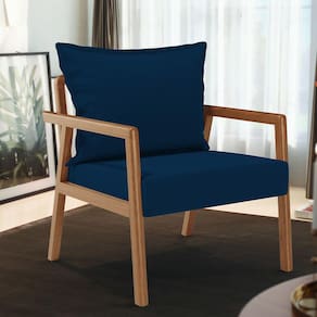 A Poltrona Decorativa Para Sala de Estar e Living Alícia B04 Suede Azul Marinho é a peça perfeita para adicionar um toque de estilo moderno a sua sala de estar. Com sua estrutura em madeira maciça envernizada, essa poltrona de madeira traz durabilidade e elegância para o ambiente. O assento estofado e revestido com materiais de qualidade oferece conforto excepcional, permitindo que você relaxe com estilo. Já o design moderno combina perfeitamente com qualquer tipo de decoração, tornando-a uma escolha versátil para qualquer sala de estar, living, recepção, escritório e diversos outros ambientes. A cereja do bolo fica por conta do detalhe da corda trançada no encosto com a almofada sobreposta, um charme à parte.