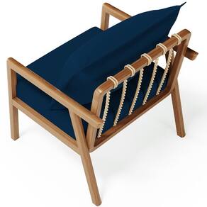 A Poltrona Decorativa Para Sala de Estar e Living Alícia B04 Suede Azul Marinho é a peça perfeita para adicionar um toque de estilo moderno a sua sala de estar. Com sua estrutura em madeira maciça envernizada, essa poltrona de madeira traz durabilidade e elegância para o ambiente. O assento estofado e revestido com materiais de qualidade oferece conforto excepcional, permitindo que você relaxe com estilo. Já o design moderno combina perfeitamente com qualquer tipo de decoração, tornando-a uma escolha versátil para qualquer sala de estar, living, recepção, escritório e diversos outros ambientes. A cereja do bolo fica por conta do detalhe da corda trançada no encosto com a almofada sobreposta, um charme à parte.