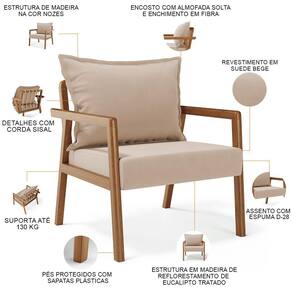 A Poltrona Decorativa Para Sala de Estar e Living Alícia B04 Suede Bege é a peça perfeita para adicionar um toque de estilo moderno a sua sala de estar. Com sua estrutura em madeira maciça envernizada, essa poltrona de madeira traz durabilidade e elegância para o ambiente. O assento estofado e revestido com materiais de qualidade oferece conforto excepcional, permitindo que você relaxe com estilo. Já o design moderno combina perfeitamente com qualquer tipo de decoração, tornando-a uma escolha versátil para qualquer sala de estar, living, recepção, escritório e diversos outros ambientes. A cereja do bolo fica por conta do detalhe da corda trançada no encosto com a almofada sobreposta, um charme à parte.