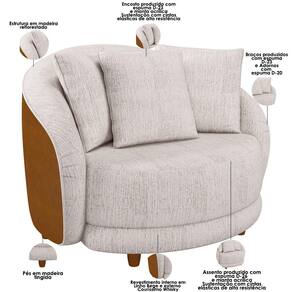 Indicado para uso residencial, sua limpeza deve ser feita com pano umedecido em água limpa, sem esfregar, não utilizar produtos abrasivos, desengordurantes, álcool ou solvente. Nunca sentar nos braços ou encosto do produto.