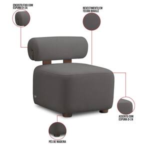 A Poltrona Helora é uma excelente escolha para quem busca uma peça com design artístico, elegante e confortável. Seu estilo inovador transforma qualquer ambiente em um visual único e marcante oferecendo um espaço acolhedor e relaxante. A poltrona possui base de madeira maciça e contém um lindo detalhes em madeira apoiada no encosto que além de garantir durabilidade e resistência realça todo o charme da peça. Conta com um apoio de cabeça em formato de cone, assento quadrado com cantos arredondados e um revestimento em tecido Bouclê Cinza Escuro, que cria uma conexão entre a peça e o ambiente. Pode ser utilizada em sala de estar, recepções, escritórios, lojas e espaços comerciais, ou qualquer outro espaço que você queira decorar com estilo e bom gosto. Ela tem uma estrutura em madeira de reflorestamento eucalipto, que garante a resistência e a sustentabilidade do produto. Ela suporta até 120 kg de peso, podendo ser utilizada por pessoas de diferentes biotipos. Ela tem um acabamento reforçado e espuma de qualidade D24, que oferece maciez e aconchego. Ela é fácil de transportar, pois tem um peso leve e um tamanho compacto. A Poltrona Helora é um produto que vai fazer a diferença na sua decoração e no seu bem-estar. Garanta já a sua!