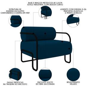 Para você que não abre mão do conforto aliado à beleza e sofisticação, a Poltrona Decorativa para Sala Industrial Kira K04 Veludo Azul, da Mpozenato, é a opção perfeita para compor a sua sala de estar.