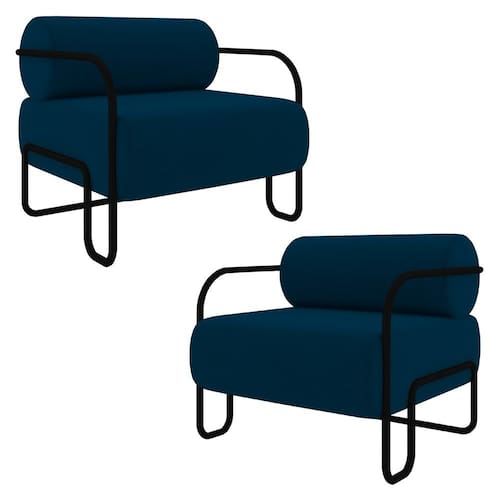 Com design moderno e inovador inspirado no estilo industrial, expresso pela base metálica com desenho curvo, esse kit com 02 poltronas decorativas vai complementar não somente a decoração da sala de estar ou living, como também poderá ser aproveitada em diversos ambientes como recepção, escritório, clínicas, dentre outros e, assim, oferecer o máximo de conforto a sua família ou clientes, enquanto cria uma sensação indescritível de bem-estar.