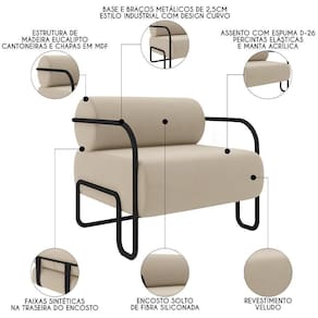 Com design moderno e inovador inspirado no estilo industrial, expresso pela base metálica com desenho curvo, esse kit com 02 poltronas decorativas vai complementar não somente a decoração da sala de estar ou living, como também poderá ser aproveitada em diversos ambientes como recepção, escritório, clínicas, dentre outros e, assim, oferecer o máximo de conforto a sua família ou clientes, enquanto cria uma sensação indescritível de bem-estar.