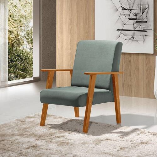 Poltrona Decorativa Para Sala Juliana Veludo Cinza Base Madeira Maciça - Cor: Cinza