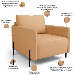 Seus pés metálicos em estilo industrial conferem não somente beleza, mas também um charme contemporâneo que se destaca em sala de estar, living, escritório ou até mesmo no seu cantinho de leitura. Confortável e versátil, a poltrona industrial Domani harmoniza com diversos estilos de decoração, sendo a escolha ideal para quem quer ousar sem abrir mão do conforto. Transforme seu lar em um verdadeiro espaço de estilo e aconchego com a Poltrona Decorativa Domani.