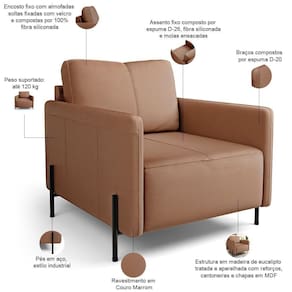 Relaxe com a Poltrona Decorativa Domani L06 Couro Marrom Lyam Decor, desenvolvida para compor salas de estar, living e espaços de leitura com conforto. O assento com espuma D-26, molas ensacadas e fibra siliconada oferece apoio agradável para uso prolongado. Já o encosto fixo com almofadas soltas em fibra siliconada contribui para uma sensação macia ao recostar, enquanto a estrutura em madeira de eucalipto traz firmeza ao uso diário. Os pés em aço no estilo industrial adicionam um toque contemporâneo que combina com diferentes propostas de decoração. A tradição da Lyam Decor em estofados reforça a escolha para quem busca aliar design e bem-estar no ambiente residencial interno.