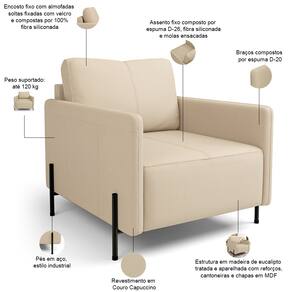 Seus pés metálicos em estilo industrial conferem não somente beleza, mas também um charme contemporâneo que se destaca em sala de estar, living, escritório ou até mesmo no seu cantinho de leitura. Confortável e versátil, a poltrona industrial Domani harmoniza com diversos estilos de decoração, sendo a escolha ideal para quem quer ousar sem abrir mão do conforto. Transforme seu lar em um verdadeiro espaço de estilo e aconchego com a Poltrona Decorativa Domani.
