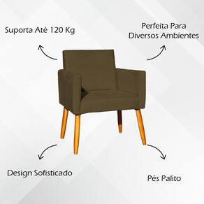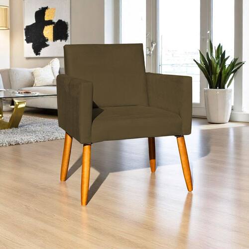 Composição e Estrutura: Produzida com estrutura em madeira de eucalipto, a Poltrona Nina oferece alta resistência e durabilidade. O revestimento em tecido suede de textura suave e sofisticada reforça sua beleza, enquanto os pés palito em tom castanho proporcionam um visual moderno com inspiração retrô.