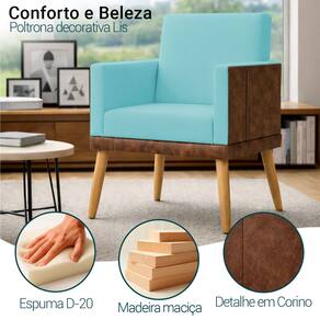 Revestimento interno: Suede; Revestimento externo: Corino Peroba; Espuma D20 (assento); Espuma D14 (encosto); Estrutura em madeira de eucalipto; Pés palito castanho (30 cm).Vendido e entregue por CLIQUE & DECORE