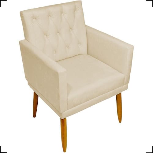 Produzida com estrutura em madeira de eucalipto, a Poltrona Nina Capitonê oferece alta resistência e durabilidade, garantindo sua qualidade por muito mais tempo. O revestimento em tecido suede de textura suave e sofisticada reforça sua beleza, enquanto os pés palito em tom castanho proporcionam um visual moderno com inspiração retrô.