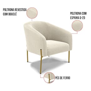 Tem novidades chegando por aqui! Olha só essa nossa inédita Poltrona Stella Bouclê. A Poltrona Stella Bouclê é para todas as ocasiões, é ideal para você relaxar, assistir tv ou ler um livro, mantendo-o confortável ao longo do dia! Um estofado versátil, que foge do convencional pelo seu design e tecido luxuoso. Seu formato curvo, marcante e sofisticado, oferece conforto de forma excepcional, com aquela sensação de abraço, que deixa o coração quentinho! Ela é fácil de transportar, pois tem um peso leve e um tamanho compacto. Ela suporta até 120 kg de peso, podendo ser utilizada por pessoas de diferentes biotipos. Desenvolvida com atenção aos detalhes para atender todas suas expectativas e necessidades, seu aspecto arredondado e anatômico possibilita que a postura fique sempre alinhada mantendo a coluna na posição correta. Ela dispõe de um acabamento impecável revestida em Bouclê em tom Bege, um tecido um tecido maleável que além de ser muito bonito é a grande tendência do momento, uma lã mais refinada e quente com toque suave semelhante à textura natural da ovelha. Contém uma estrutura em madeira de reflorestamento eucalipto, sua sustentação é dada pelos Pés de Ferro Lateral Dourado, que garante mais segurança e firmeza ao sentar-se. Ela tem um acabamento reforçado e espuma de qualidade D23, que oferece maciez e aconchego. Além do mais ela tem assento com persintas elásticas, que proporcionam flexibilidade e conforto. A Poltrona Stella é um produto de alta qualidade, beleza e funcionalidade. Ah! Vale a pena lembrar que a Poltrona Stella Bouclê, foi produzida em quantidades limitadas para aqueles que procuram criar um visual diferenciado e exclusivo. Então, não deixe de aproveitar esse lançamento, hem! Leve a sua agora mesmo.