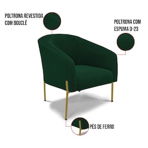 Poltrona Decorativa Pé Ferro Dourado Kit 2 Stella Bouclê D03 - D`Rossi - Verde