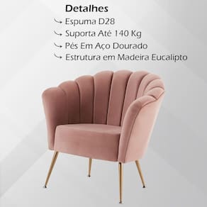 Poltrona Decorativa Pes Aço Dourado 7048, ela é perfeita para seus melhores momentos, na leitura, no descanso, nas conversas com a família e amigos. Estrutura em Madeira de Eucalipto e Aço, com pintura em acabamento Epóxi (Fosco). Composta por encosto e assento estofados com espuma D-28 de altíssima qualidade e procedência, encosto em formato de Pétala que irá deixar sua decoração ainda mais bela, revestimento em tecido Veludo e conta com Pés Aço Dourado. Suporta até 140 Kg. É ideal para qualquer espaço ou ambiente. Este móvel chegará na sua casa separado em 01 volume.